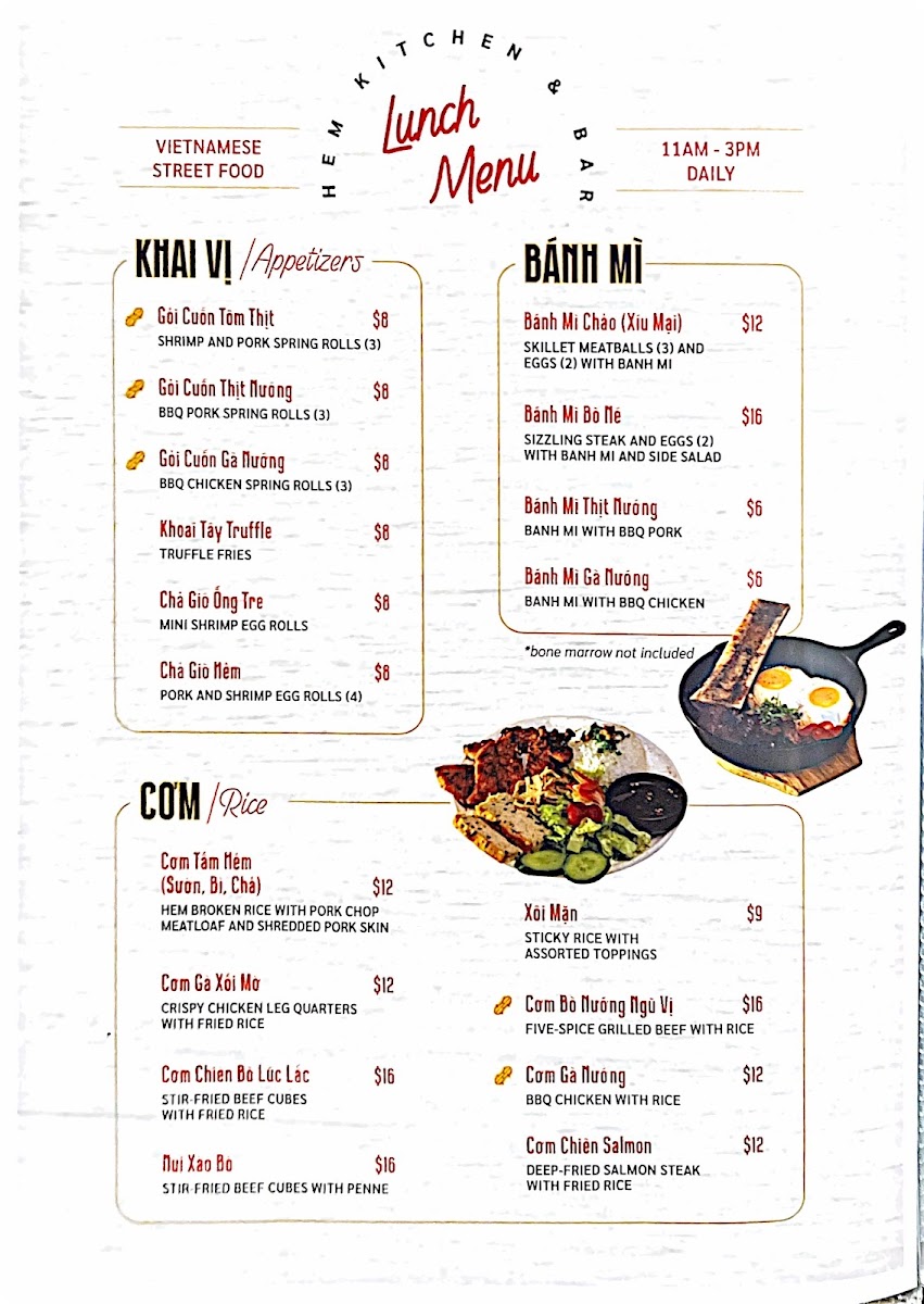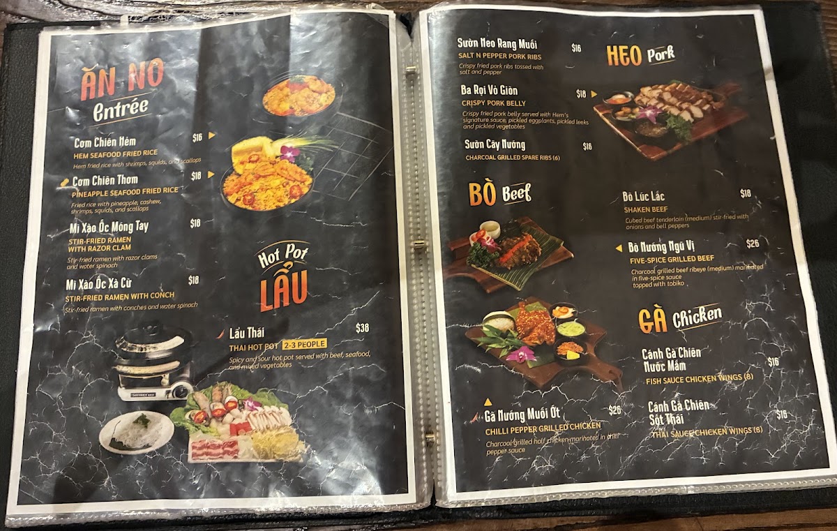 The menu at Hẻm is a delightful exploration of authentic flavors. Start with the Truffle Fries or Egg Rolls, both priced at $9. For a heartier experience, indulge in the Thai Hot Pot for $38, perfect for sharing and customizable with an array of seafood and beef options. You'll find extras like lobster and dungeness crab add-ons that elevate your dining experience.